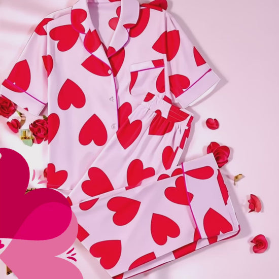 Dream in royal comfort with the Queen of Hearts Dreamwear Pajama Set. This heart-adorned ensemble, featuring a collared top and elastic-waist pants, combines playful charm with all-day ease.